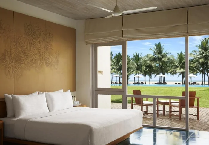 Som standard bor du i ett Deluxe-rum med havsutsikt, vilket ger dig gott om möjligheter att njuta av de exotiska omgivningarna. Inredningen är modern och ljus, med lugna färgskalor och ett azurblått golv som vackert speglar havets färg. Alla rum är bekvämt utrustade med wifi, aircondition, TV, minibar, te- och kaffefaciliteter samt värdeskåp, medan badrummet erbjuder badrock, toalettartiklar samt badkar och separat dusch. Din privata balkong eller terrass bjuder dessutom in till stillsamma stunder med utsikt över Indiska oceanen.