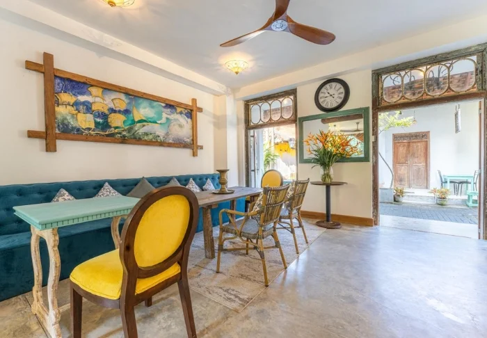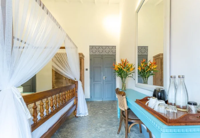 Att bo på Parawa House är en upplevelse i sig. Hotellet har med tiden varsamt bevarats med ursprungliga detaljer som snidade trädörrar, färgglada fönster och små arkitektoniska finurligheter. Tillsammans skapar dessa en känsla av nostalgi och lugn. En avkopplande stund hittar du även på översta våningen, där du efter en upplevelserik dag kan njuta av den lilla solterrassen pyntad med rosa bougainvillea.