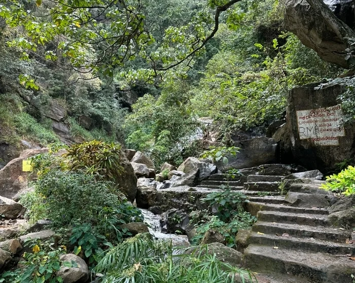 Första stoppet är Ravana Falls, ett av Sri Lankas bredaste och mest imponerande vattenfall. Här störtar vattnet 25 meter ner mellan klipporna och dånet är så kraftigt att ni nästan kan känna vattendropparna i luften. Enligt legenden bodde demonkung Ravana här och höll prinsessan Sitha gömd i en grotta bakom vattenfallet, en berättelse som verkligen sätter igång fantasin medan ni står och ser ut över de dånande kaskaderna.