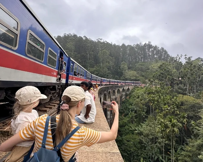 Längs brobanan kan du ha turen att få sällskap av små ödlor och färgglada fåglar, och om du har rätt timing får du uppleva hur ett tåg långsamt rullar över bron – ett magiskt ögonblick där brokonstruktionen, den frodiga naturen och Sri Lankas ikoniska tåg möts. Ett minne som garanterat blir ett av familjens favoriter från resan.