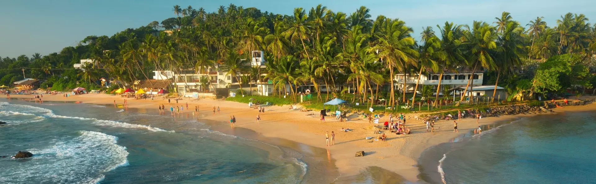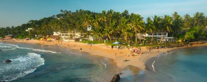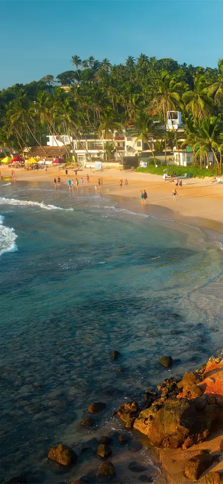 Mirissa är relativt lugnt och består av tre små vikar med svajande kokospalmer längs de vackra, nästan paradisliknande stränderna. Trots att detta är en av Sri Lankas mest populära badorter råder det fortfarande en härlig, avslappnad atmosfär, där det är lätt att varva ner.