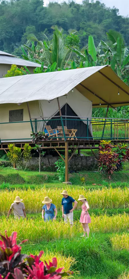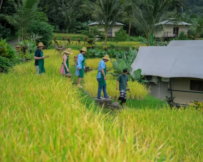 Risterrasserna i Manggis har i generationer varit byns livsnerv. Idag är de också navet i en omställning till ekologiska odlingsmetoder som skyddar jorden, bevarar vattenkällorna och skapar ett hållbart landskap för framtiden. Med stöd från Kaura Bali arbetar lokala lantbrukare nu helt utan kemiska hjälpmedel. Som gäst kan du följa med ut på fälten och få en inblick i arbetet med att plantera ris, vända kompost och skörda grönsaker.