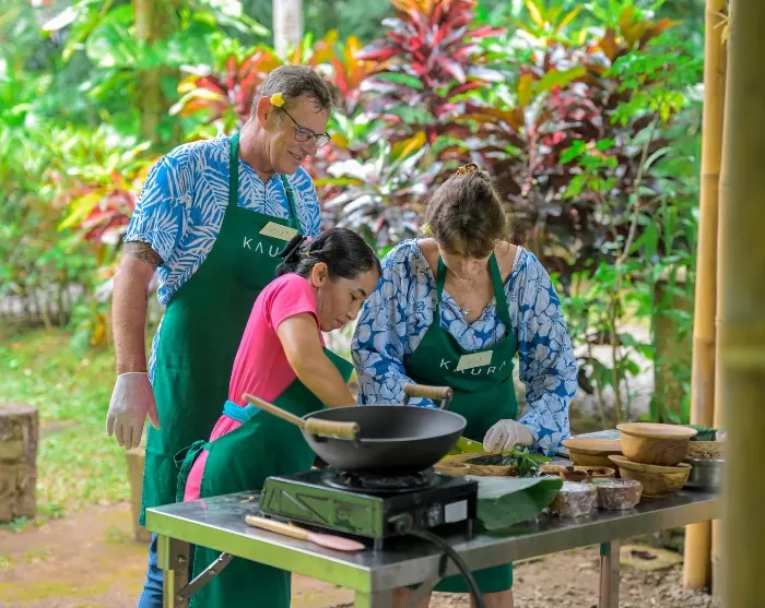 Kaura Bali är också en plats där lokala traditioner hålls vid liv. Vävare visar hur naturliga fibrer blir till fint hantverk, kockar delar säsongens recept och byns kvinnor lär ut hur de tillverkar kokosolja och kroppsvårdsprodukter. Det ger både inkomster, stolthet och en möjlighet att föra kunskapen vidare till nästa generation.