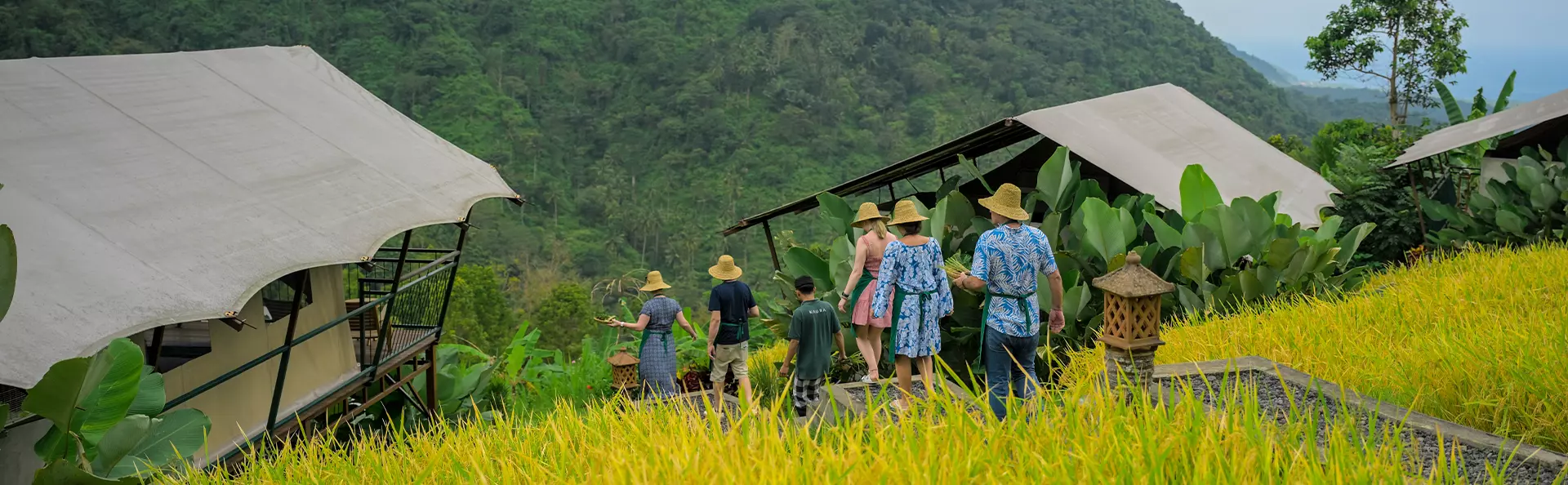 Kaura Bali ligger i kuperad terräng med utsikt över både risterrasser, djungel och Indiska oceanen. Här är naturen inte bara en vacker inramning, utan en viktig del av livet för familjerna i Manggis. Med Kaura Bali har byn fått en ny möjlighet att stärka både naturen och gemenskapen på egna villkor.