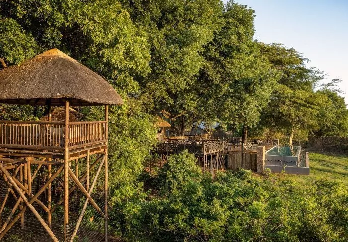 Med panoramautsikt över Crocodile River med nationalparken på andra får man genast en känsla av närhet till natren och de vilda djuren. Du kan uppleva spektakulära safariscener direkt från terrassen och från lodgens de luxe-rum.