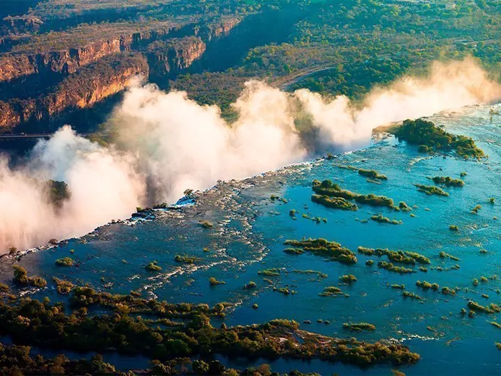Sista stoppet på din Afrika-resa är de mäktiga Victoriafallen på gränsen mellan Zambia och Zimbabwe.