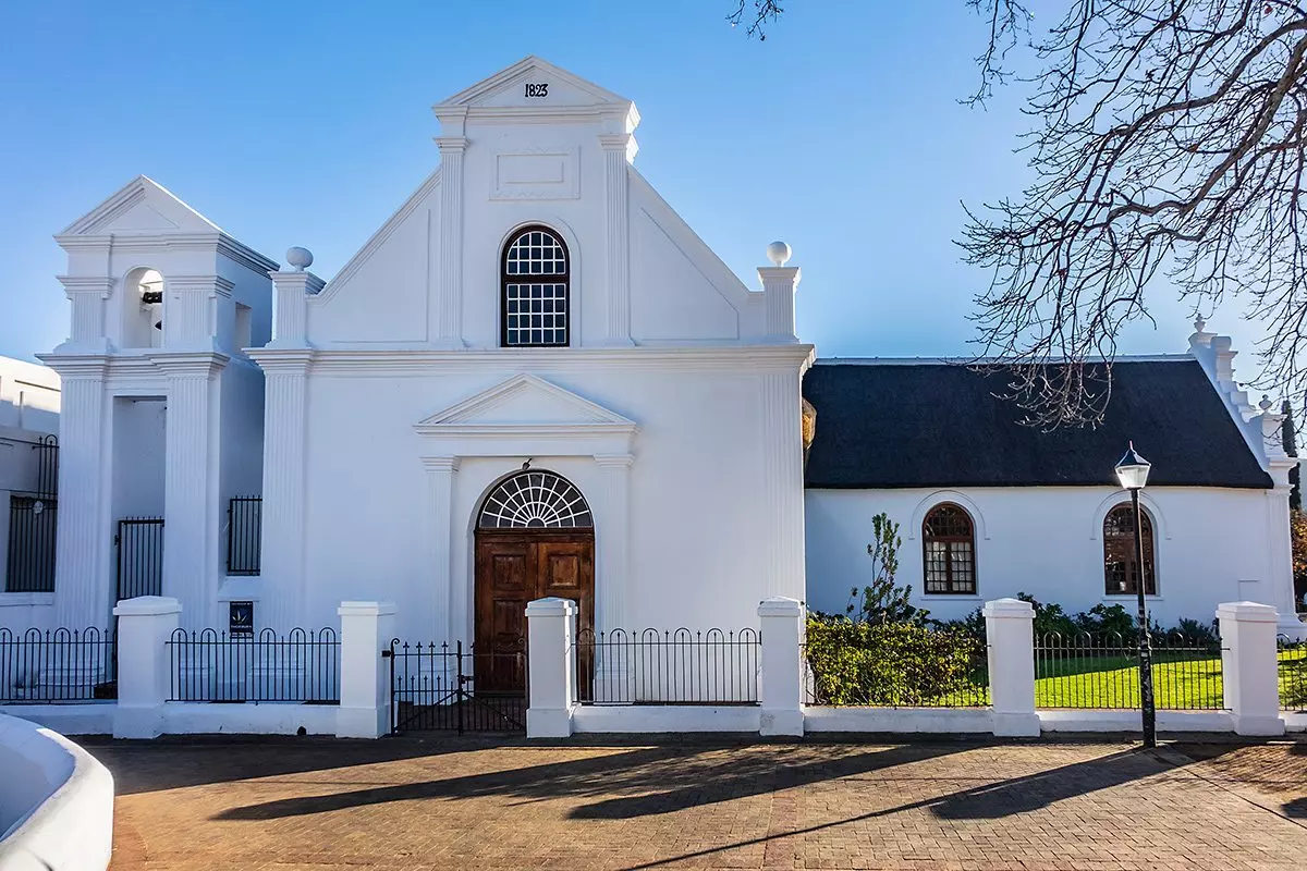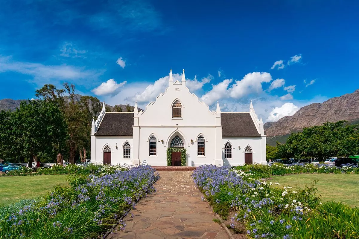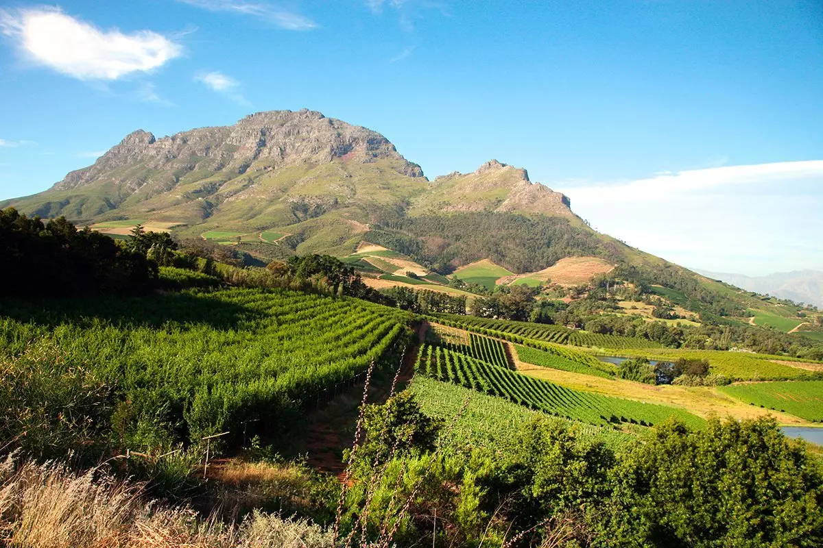 Från Kapstaden går resan nu mot det frodiga vinlandet. Efter bara en timmes körning hamnar du i en helt annan värld. Här är gröna vinodlingar, hus byggda i den karaktäristiska kapholländska stilen och i bakgrunden ser du bergen, som är en bidragande orsak till att dalarna i Vinlandet är så fantastiskt bra för vinodling.