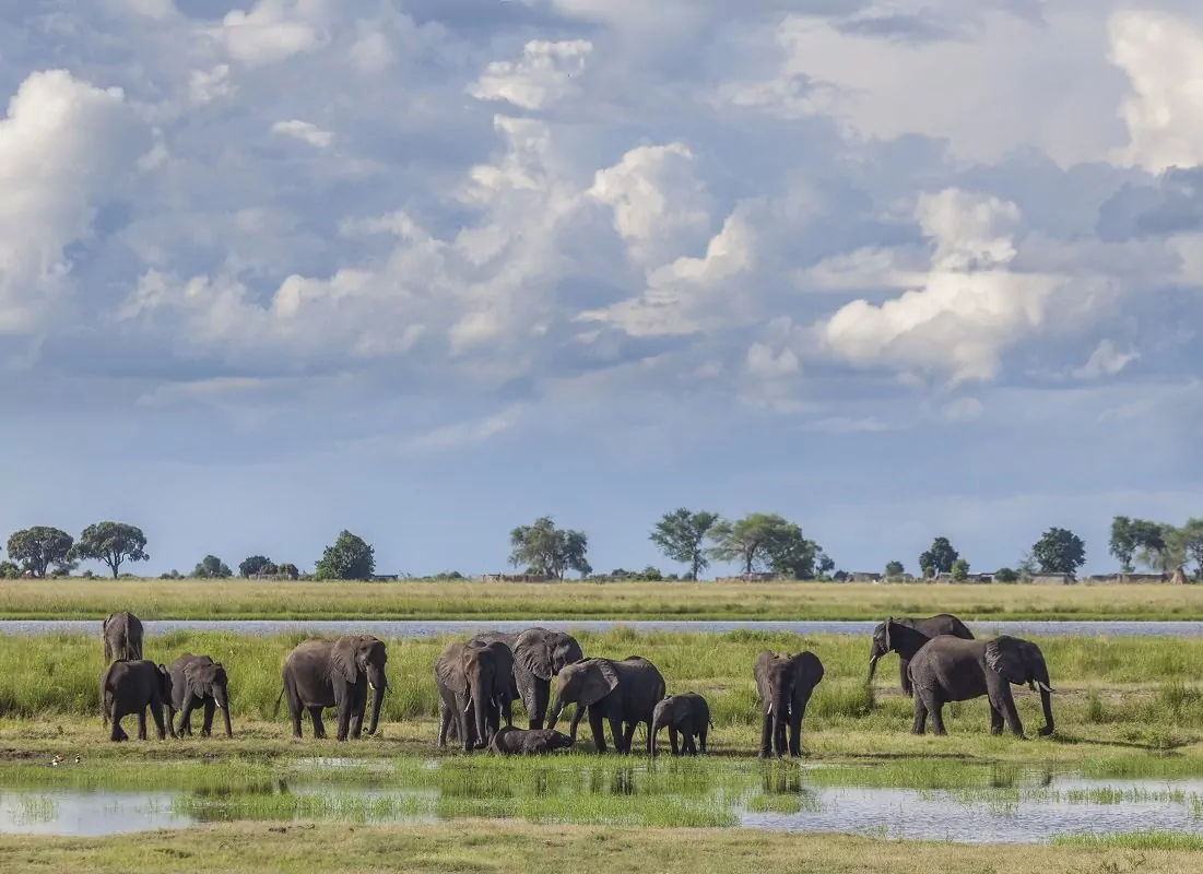 Om du vill ha elefant-garanti ska du åka till Chobe nationalpark i Botswana. Här finns den största koncentrationen av elefanter i hela Afrika. Minst 50 000 elefanter lever här – enligt vissa till och med upp till 120 000. Du kan dessutom se mängder av bufflar, gnuer, zebror, giraffer, antiloper, lejon, flodhästar, krokodiler. Parken har även ett rikt fågelliv med t.ex. storkar, bitätare och gamar. Det är inte heller ovanligt att se både hyenor, leoparder eller de sällsynta vildhundarna. Det är inte för inte som Botswana ofta blir utsett till ett av de bästa safariländerna i hela Afrika!