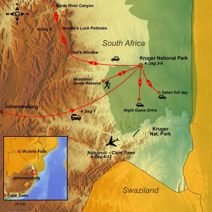 På denna resa bor du några få meter från ingången till självaste Kruger nationalpark. Du får chansen att komma riktigt nära The Big Five och lär dig att tolka naturens signaler under en spännande bushwalk med en kunnig parkvakt.