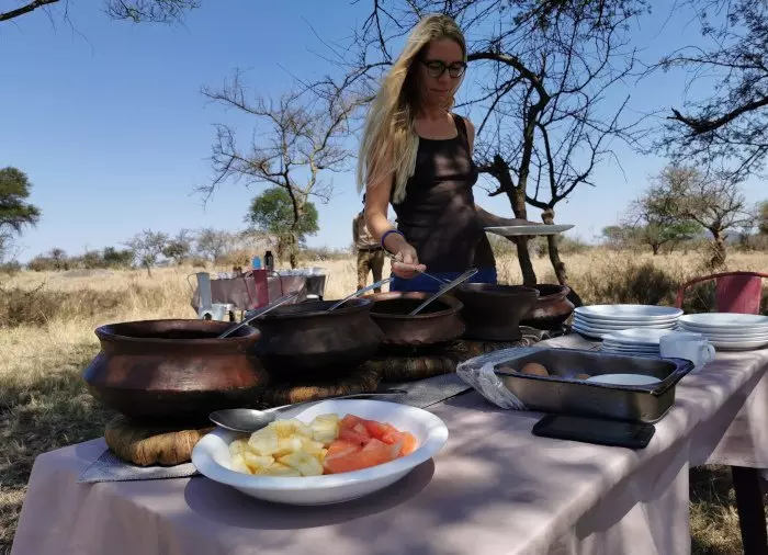 Man skulle nästan inte tro det för ofta sitter man bara stilla i en bil under många timmar när man är på safari, men man blir fruktansvärt hungrig i en safaribil! Kanske är det all den friska luften, de (tidvis) skumpiga vägarna eller adrenalinet som gör det – mat måste man ha och det finns nästan inte något bättre än en god och mättande lunch, som intas mitt på Serengetis vidsträckta slätter.