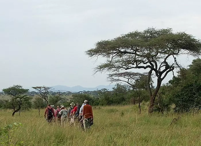 En walking safari är en vandringstur i bushen runtom Ikoma Wild Camp. Turen varar ca 60 min och pågår under tiden det är ljust. Du vandrar i den vilda naturen och blir därför ledd av både en guide och en beväpnad säkerhetsvakt. På vägen kan du se gaseller, antiloper, zebror, gnuer, giraffer, elefanter, hyenor, bufflar och kanske till och med ett lejon. Det är en fantastisk upplevelse att gå runt i den vilda naturen där du inte är herre över någon!