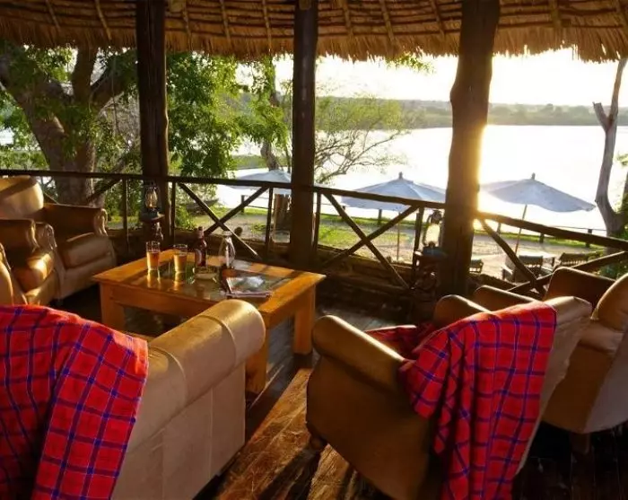 Det är svårt att hitta en lodge med bättre läge än Ruaha River Lodge.