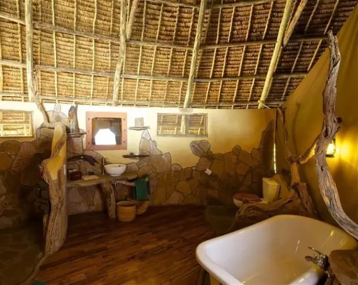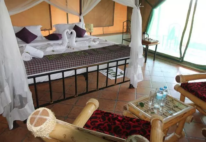Lodgen består av 23 tält, som egentligen är en blandning av tält och hyddor. De har fasta golv och riktiga badrum, medan delar av ”rummets” övriga väggar består av kanvas. Alla rum har egen veranda med utsikt över området, och mellan tälten finns det stigar och gröna områden så att du alltid har känslan av att det finns gott om plats.
