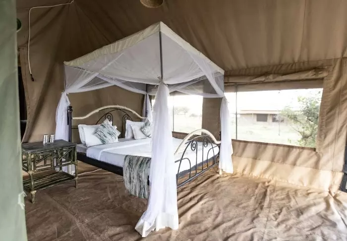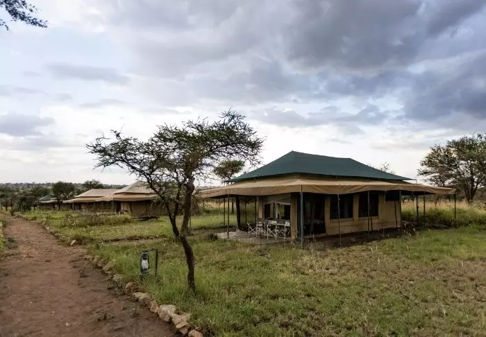 Här finns 25 bekväma tält, som alla är byggda på stenterasser och det finns en egen veranda utanför tälten. Härifrån har du utsikt över Serengeti. Samtliga tält har ståhöjd och det finns gott om plats för sängar. Här finns rinnande vatten, toalett, myggnät och el – allt bakom en kanvasvägg, så att man kan höra den afrikanska naturen utanför. Det är en äkta safariupplevelse.