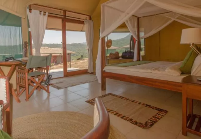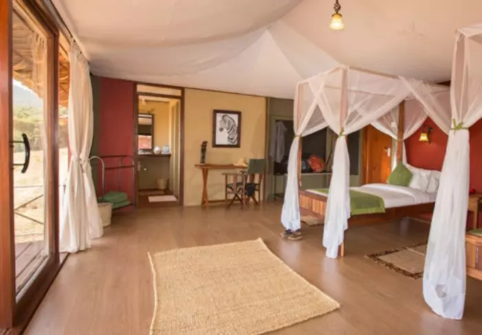 Lodgen består av 23 tält, som egentligen är en blandning av tält och hyddor. De har fasta golv och riktiga badrum, medan delar av ”rummets” övriga väggar består av kanvas. Alla rum har egen veranda med utsikt över området, och mellan tälten finns det stigar och gröna områden så att du alltid har känslan av att det finns gott om plats.