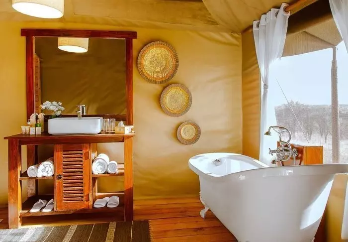 Här finns endast sju tält, som alla står på sin egen plattform en bit ovanför marken med utsikt över den sagolika naturen omkring dig. Kanvasväggarna gör att du kan höra bushens ljud även på natten, och tältväggarna består av myggnät som säkerställer att den svalkande brisen når dig innanför.