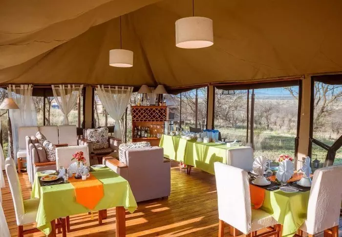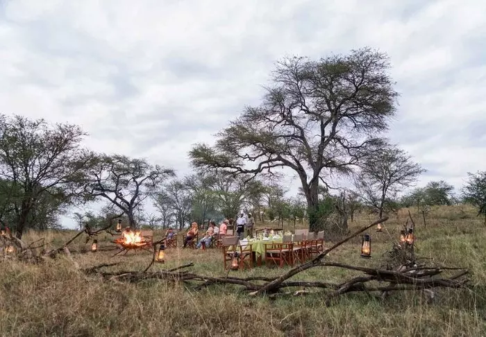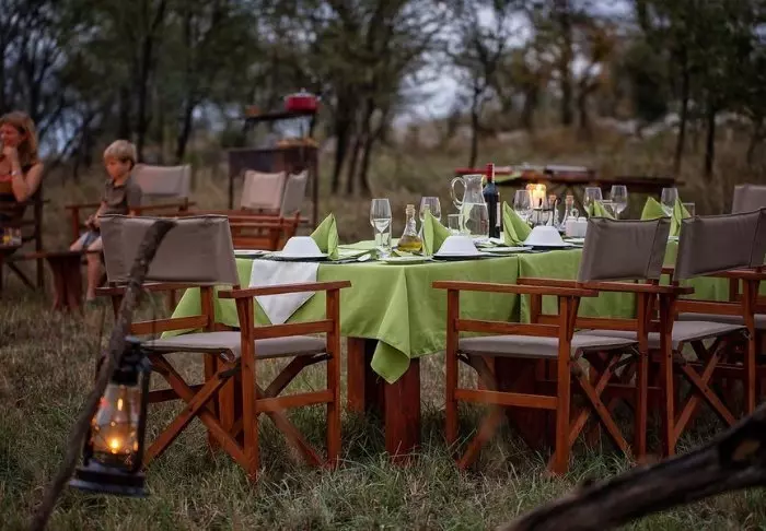 Måltiderna intas normalt i mässtältet, men ibland dukar man även upp i bushen utanför så att du kan njuta av den afrikanska kvällshimlen vid det mysiga lägerbålet.