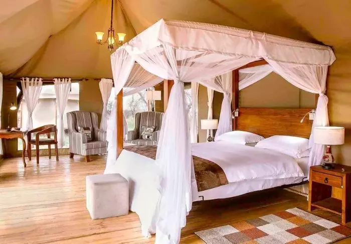 Drömmer du om polerade golv, badkar på lejonfötter och eleganta möbler i ett lyxtält mitt på Serengeti, så ska du välja att uppgradera till Matawi Serengeti Camp.
