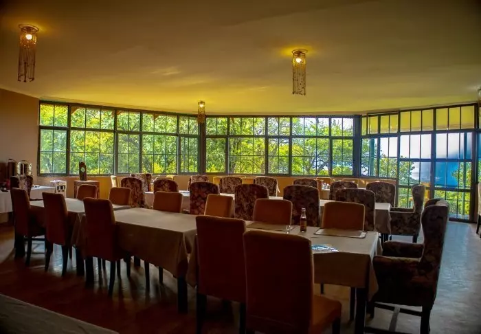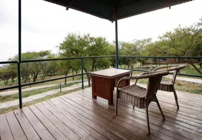 Från restaurangen har du en fantastisk utsikt över området som ligger mitt i djurens väg ut. Området är dessutom hemvist åt stora flockar med olika antiloparter, bufflar, elefanter, flamingor och andra fågelarter.