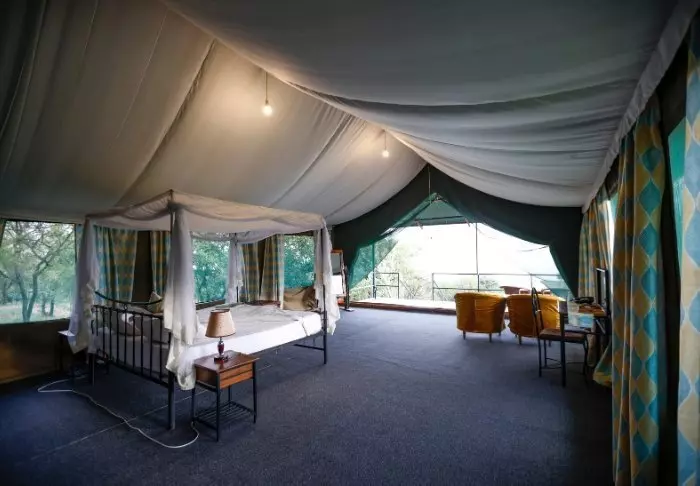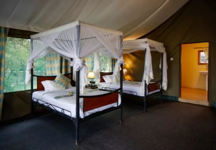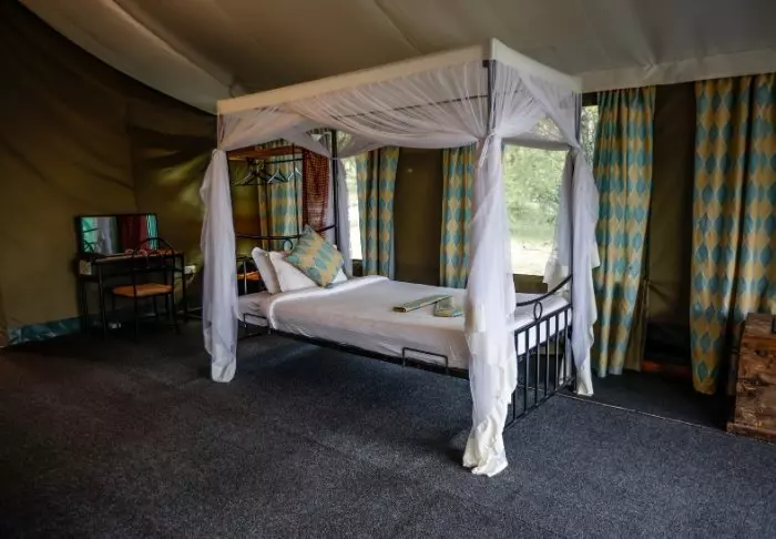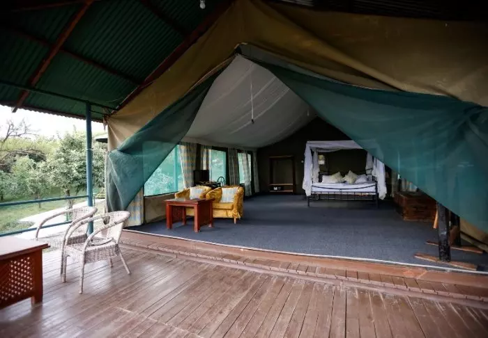 Ngorongoro Wild Camp består av 20 stora tält med full takhöjd och fast golv. Tälten är byggda på pålar vilket ger en fantastisk utsikt över området från terrasserna på framför tälten. Alla tält har ett eget stort badrum byggt i klinkers och stenplattor. Det finns rinnande vatten, toalett och dusch.