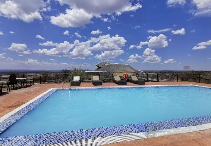 Från poolen har du också direkt utsikt över Serengeti och du kan ligga i poolen och njuta av landskapet och den vackra utsikten. Här kan du koppla av eller ta ett uppfriskande dopp efter en lång dag med upplevelser.