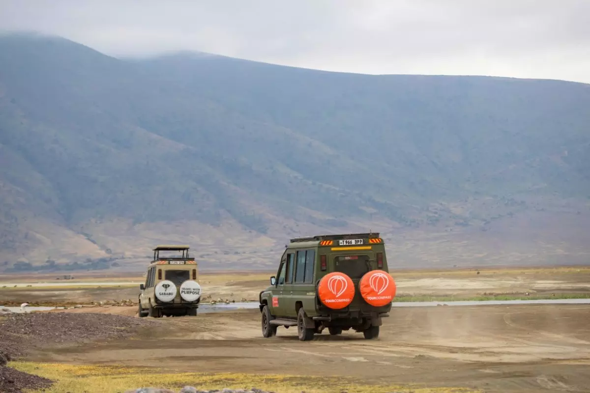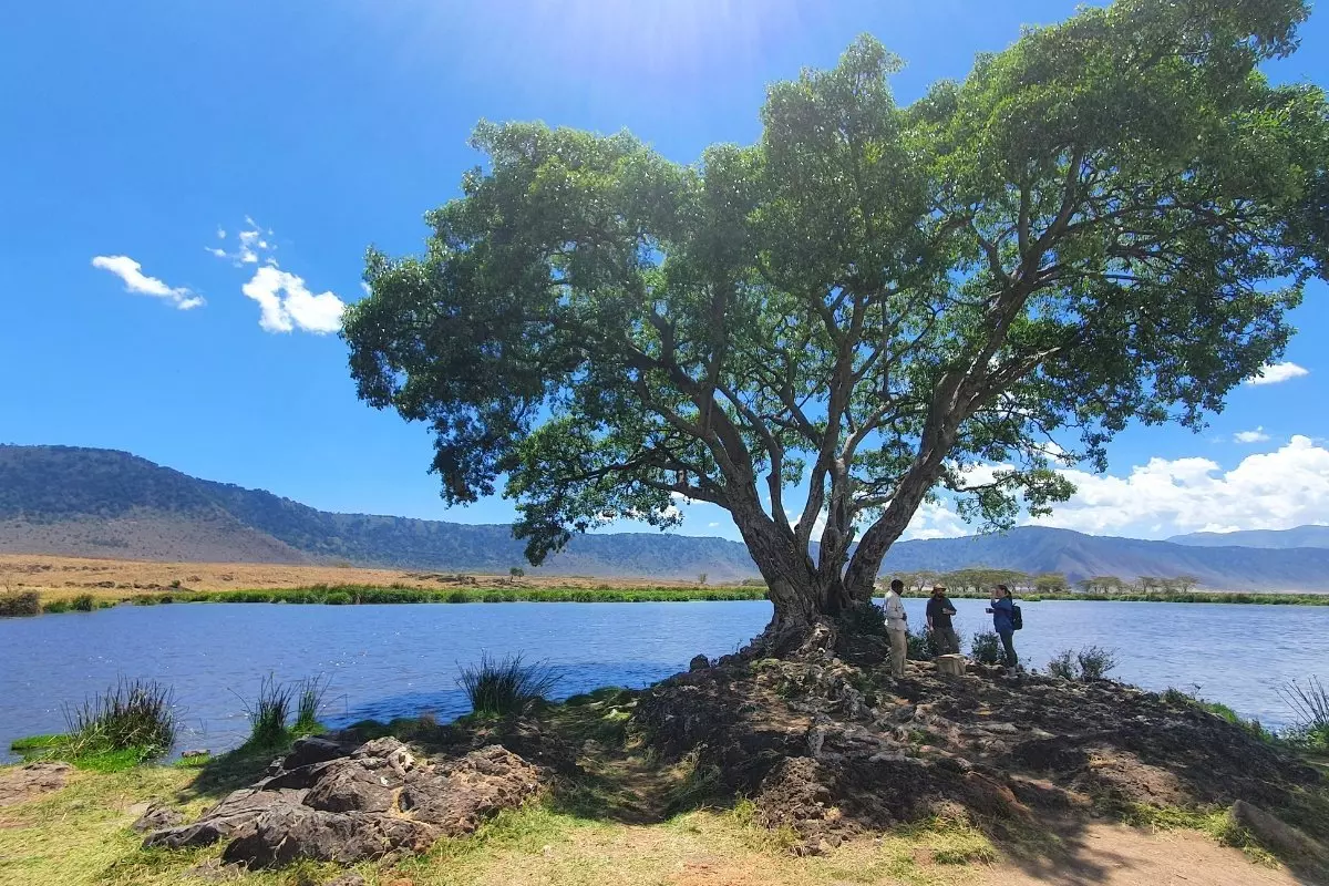 Elefanter, zebror, gnuer, bufflar, lejon, flamingor, flodhästar, antiloper, storkar, hyenor, sjakaler – och den utrotningshotade svarta noshörningen. Själva kraterbotten är flat, 260 kvadratmeter stor och över er tornar kraterkanten sig 600 meter upp. Det känns som om ni är på botten av världen, men kraterbotten ligger faktiskt 2 000 meter över havsytan.