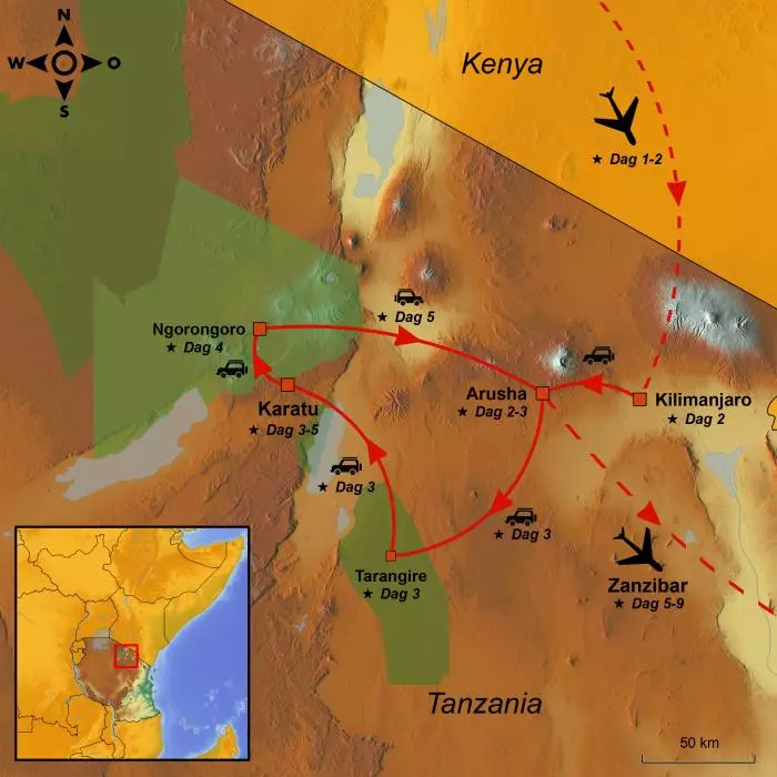 Du anländer till Kilimanjaro flygplats i Tanzania. Utanför flygplatsen möts du av en av våra lokala guider, som kör dig till ditt hotell strax utanför Arusha. Här övernattar du en natt. Resten av dagen tillbringar du som du vill. Du kan vila ut efter resan och kanske ta ett dopp i poolen på hotellet.