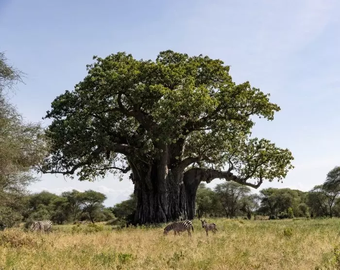 Tarangire nationalpark är också känd för sina många baobabträd. Du ska verkligen ha otur om du inte lyckas ta en bild av en elefant under ett baobabträd, vilket på finaste sätt illustrerar storleken på några av träden. Baobabträdet är en av världens äldsta träarter och några uppskattningar säger att trädet kan bli upp till 3 000 år gammalt. Det sägs att ett baobabträd har vuxit färdigt först när det är 1 000 år gammalt!