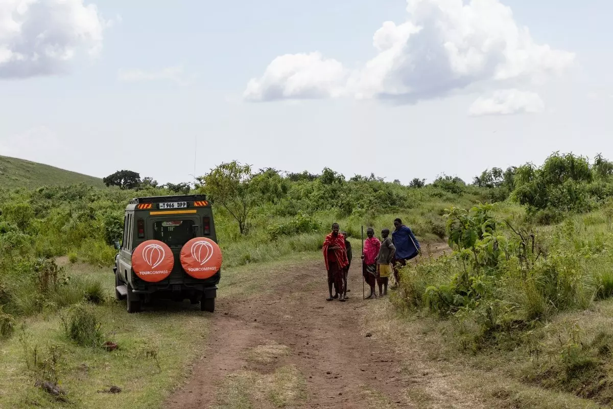 Därefter går turen genom Ngorongoro naturskyddsområde, där du besöker de rödklädda massajerna i en lokal by. Här kan du uppleva hur livet i en massajby ser ut, samt ta del av massajernas hantverk som huvudsakligen består av pärlarbete. De vill gärna sälja hantverk, men kom ihåg att ”pruta” på priset.