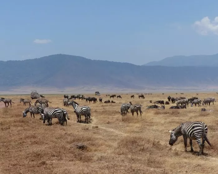 Från Serengeti går turen vidare mot Ngorongorokratern. Du åker i bil, så det känns om att du är på en lång game drive hela dagen.