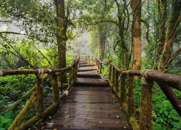 När du kommer till toppen av berget väntar en vandringstur i den mystiska molnskogen. Här passerar du bland annat en pagod som rests till minne av just kung Inthawichayanon.
