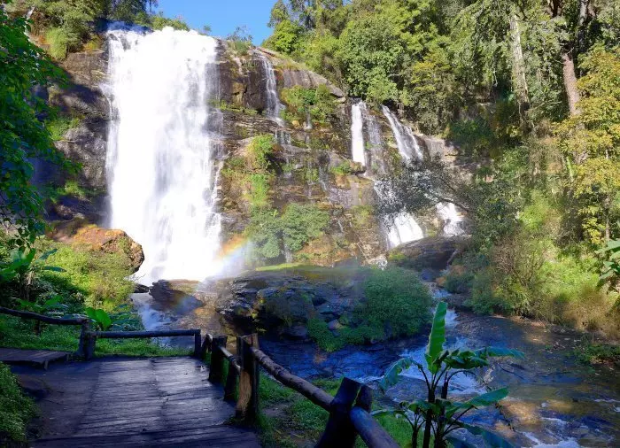 Den sista delen av resan går till det 40 meter höga, brusande vattenfallet Wachiratharm, som är ett av nationalparkens mest imponerande vattenfall.