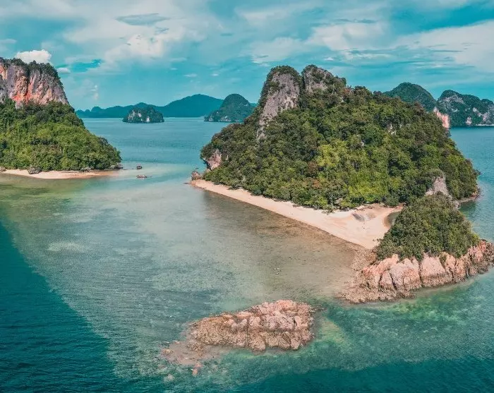 Därefter tar motorbåten dig vidare till de små, idylliska öarna Koh Lao La Ding och Pak Bia Island, där du får möjlighet att snorkla och uppleva det färgrika marina livet. Vid ebb kan du uppleva att en sandbank dyker upp och förbinder Pak Bia med grannön Koh Lao La Ding Island, känd som Paradisön. Öarnas läge i närheten av Phang Nga-bukten gör att vattnet här är mer smaragdgrönt än turkost och sanden är mer gyllene än vit.