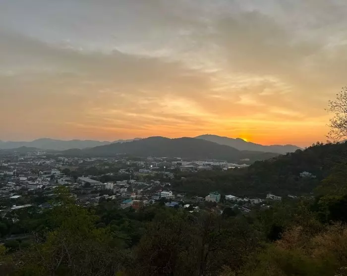 Med full mage besöker du sedan Phukets berömda utsiktspunkt Khao Rang Hills och njuter av den storslagna utsikten över Phuket vid solnedgång.