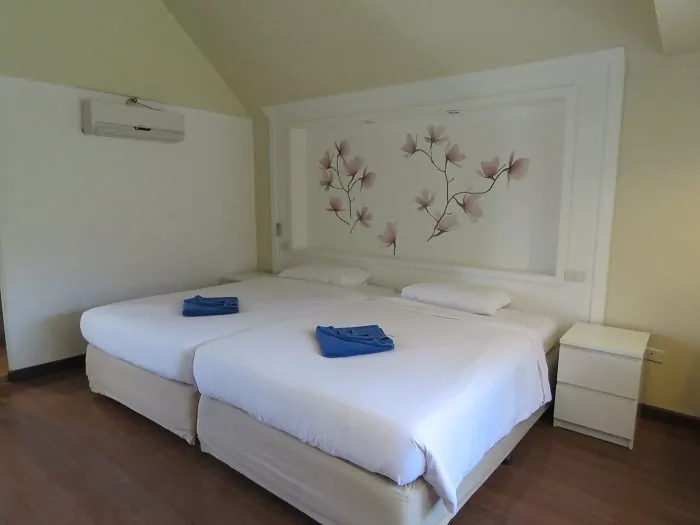 Resorten är byggd som en traditionell by och utstrålar trivsel. Här finns totalt 62 rum inredda i klassisk thailändsk stil med mörka möbler av teak och färgrika väggar och textiler. Samtliga rum har wifi, aircondition, minibar, mineralvatten på flaska, kaffe- och tefaciliteter, tv, telefon och paraply. Badrummet är utrustat med hårtork och toalettartiklar. Från balkongen kan du njuta av utsikten över havet eller kanalen.