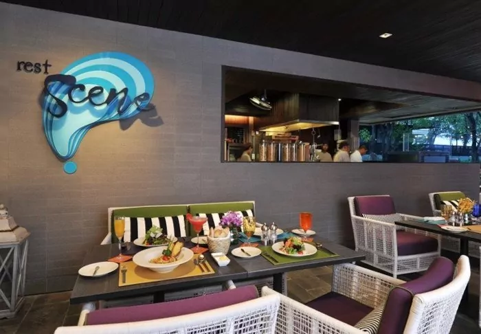 Hotellets trivsamma restaurang serverar utsökta rätter med allt från thailändska delikatesser till internationella favoriter.