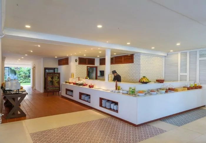 När du blir hungrig kan du besöka ett av resortens tre matställen, som alla ligger med utsikt över havet: Atrium Café, Beach Bar & Restaurant och Poolside Bar. Här serveras en variation av både asiatiska och internationella rätter. Njut av en uppfriskande drink här vid strandkanten.