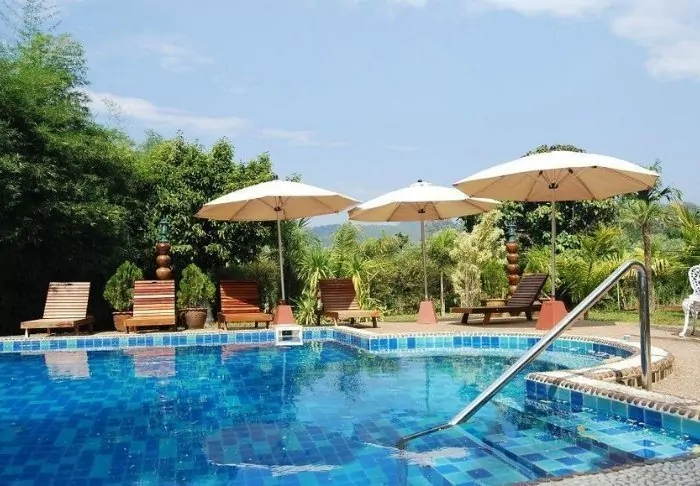 Efter en dag fylld med upplevelser kan du njuta av ett dopp i hotellets infinity-pool, som är vackert dekorerad med lokalt tillverkade kakelplattor. Du kan också bara hänga vid poolen och beundra den hisnande utsikten över gröna fält och berget Mae Yen. Det finns även solstolar, så att du enkelt kan vila och koppla av under solens strålar.
