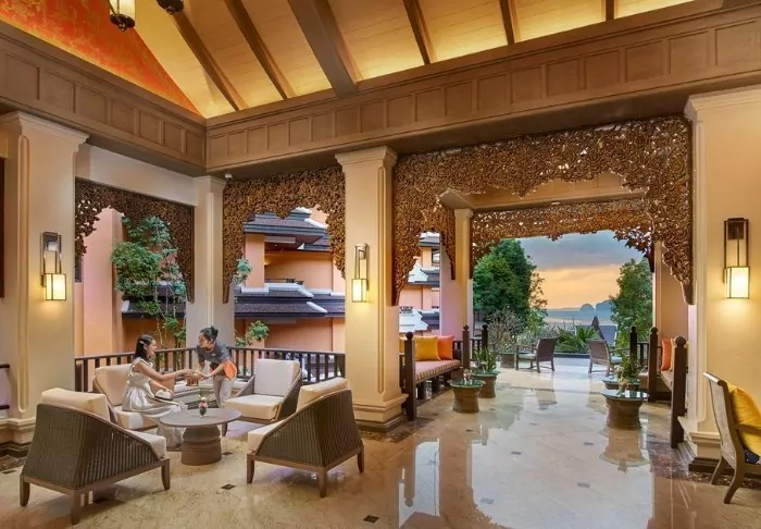 Resorten är inredd i vacker thailändsk stil och du hälsas välkommen av en vacker utsikt över Andamansjön och de omkringliggande kalkstensklipporna.