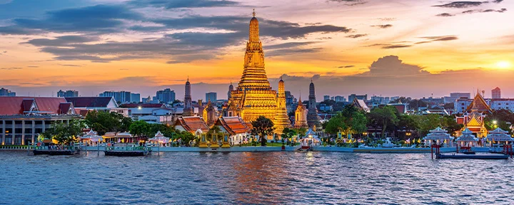 Resan börjar i den pulserande huvudstaden Bangkok, där smakfulla gatukök, panoramiska skybarer och skarpa kontraster möts. Vi bjuder in dig på en streetfood-tur med tuk-tuk som ger en unik inblick i stadens fantastiska matställen och det lokala livet. Kvällen avslutas på en mysig takbar vid Chao Phraya-floden med utsikt över det upplysta templet Wat Arun.