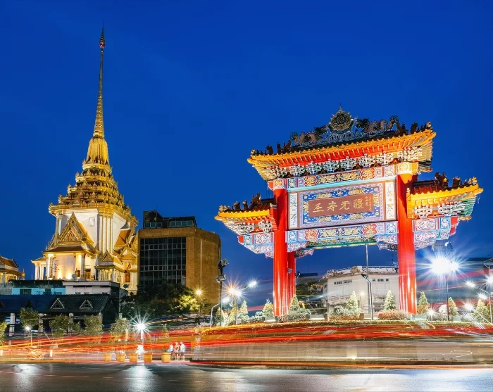 Därefter hoppar du åter in i en tuktuk och susar genom Chinatown, där neonsken och livliga gator skapar en alldeles särskild atmosfär. Ett kort stopp görs vid den 27 meter höga Giant Swing, ett historiskt och kulturellt landmärke vid templet Wat Suthat Thepwararam, som är vackert upplyst på kvällen och perfekt för foton.