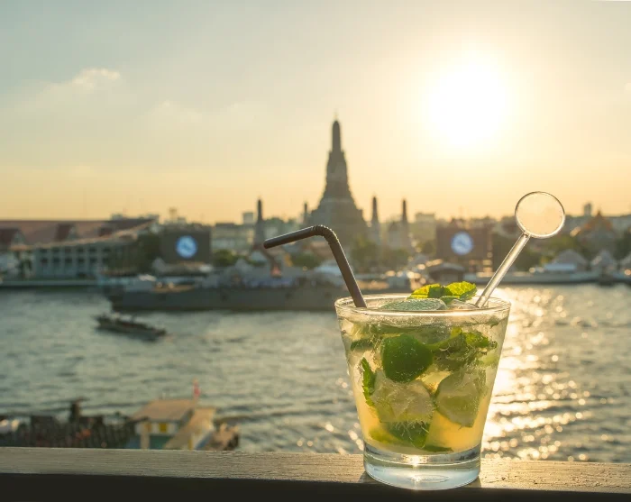 Här kopplar du av på en takbar vid floden med en drink i handen, medan du njuter av utsikten och stämningen. Bangkok känns sällan mer levande än just här.