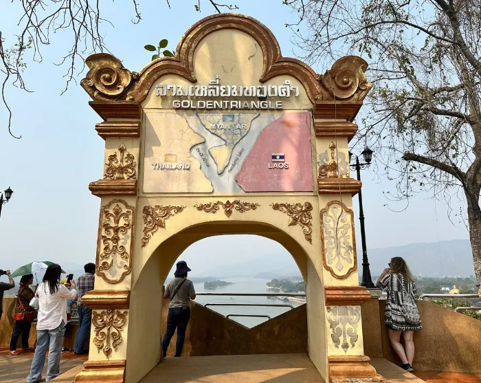 Därefter fortsätter turen lite längre norrut till Den Gyllene Triangeln, ett område som sträcker sig in i både Laos och Myanmar. Området var tidigare känt för sin omfattande opiumhandel men har idag genomgått en förvandling. Lokala minoritetsgrupper odlar nu ris, kaffe och andra grödor i det frodiga, bergiga landskapet. En särskild höjdpunkt är utsiktspunkten, där du kan se tre länder – Thailand, Myanmar och Laos – på en och samma gång.