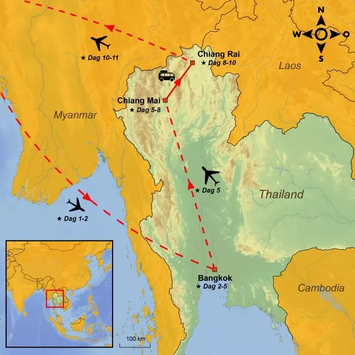 Idag lämnar du den thailändska huvudstaden. Du blir hämtad på hotellet och körd till flygplatsen, varifrån du flyger till Chiang Mai i det bergiga norra Thailand. Flygturen tar cirka 1 timme och 20 minuter.
