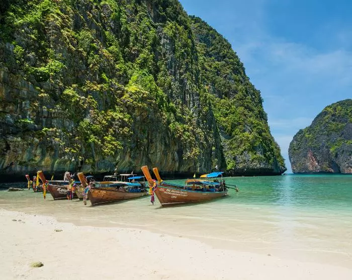 Ännu längre österut ligger de paradisiska Phi Phi-öarna, som du kan uppleva på en heldagsutflykt då du badar, snorklar och kopplar av på de kritvita sandstränderna.
