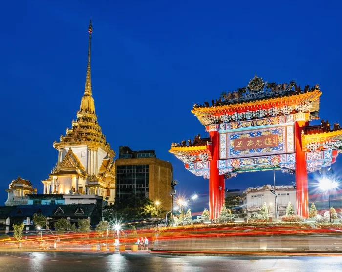 Därefter hoppar du åter in i en tuktuk och susar genom Chinatown, där neonsken och livliga gator skapar en alldeles särskild atmosfär. Ett kort stopp görs vid den 27 meter höga Giant Swing, ett historiskt och kulturellt landmärke vid templet Wat Suthat Thepwararam, som är vackert upplyst på kvällen och perfekt för foton.