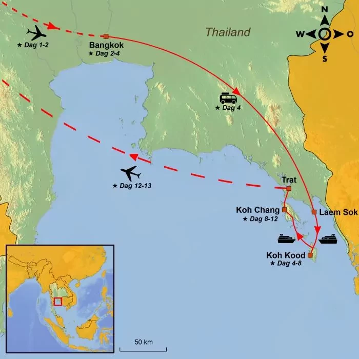 Denna resa är den perfekta kombinationen av Bangkoks pulserande storstadsliv och det avslappnade ö-livet på några av Thailands vackraste öar, som inte är lika besökta som de sydthailändska öarna.