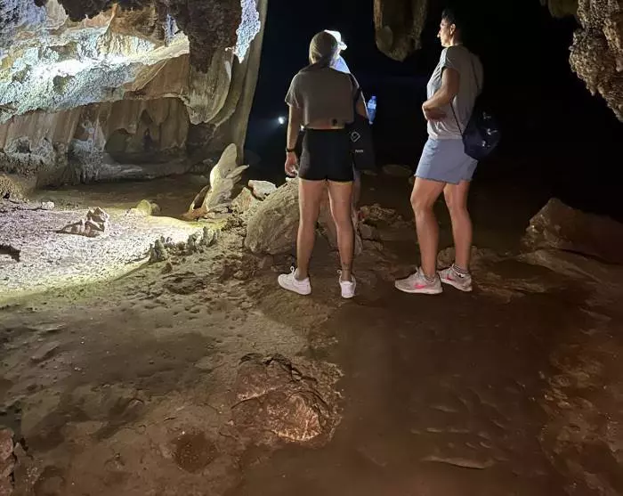 Du kan också välja att följa med på en spännande vandring som tar dig genom djungeln till en av områdets vackra stalaktitgrottor, Coral Cave. Se till att ta med vatten och robusta skor med stängd tå och observera att det kan vara halt under regnperioden. Tillsammans med din guide kommer du att åka till den plats där vandringen börjar i en longtail-båt. Under vandringen kommer du att få uppleva djungelns imponerande fauna, och din guide kommer att berätta om de olika arterna längs vägen. Du kan också få se några av de fåglar och insekter som bor i djungeln. Efter cirka 45 minuter kommer ni fram till en lagun där en bambuflotte väntar för att ta er till Coral Cave, vilket tar cirka 15 minuter. Inuti grottan kommer du att få se vackra stalagmiter och stalaktiter som liknar elefanter, häxor och ormar. Resan återvänder sedan på samma sätt som ni tog er dit.