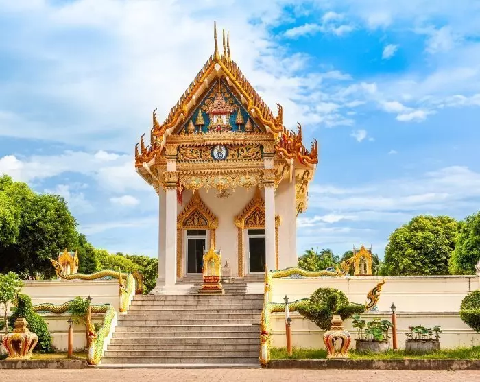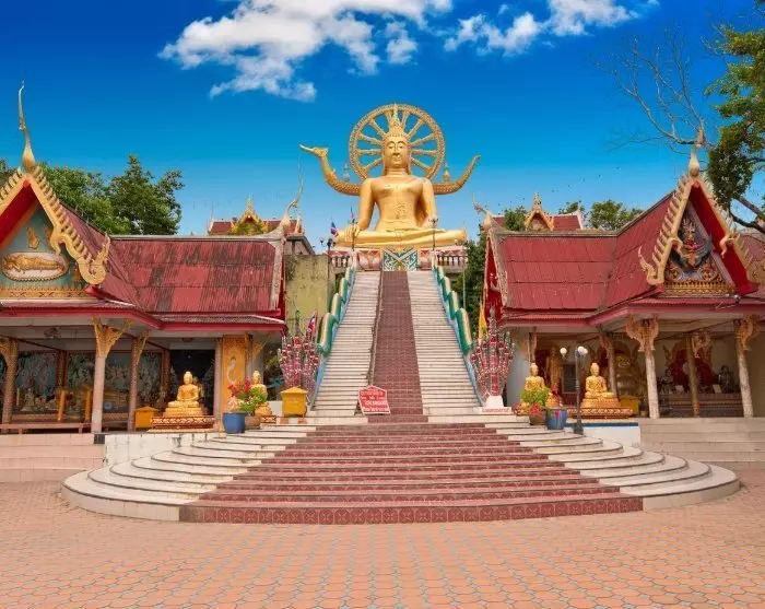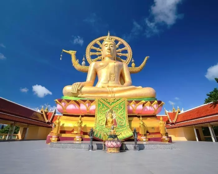 Första besöket är Big Buddha-templet, vilket är Koh Samuis landmärke. 72 trappsteg leder upp till den enorma buddhastatyn, som vackert skjuter i höjden och glänser med sitt guldbelagda yttre. Härifrån har du också en fantastisk utsikt över havet.
