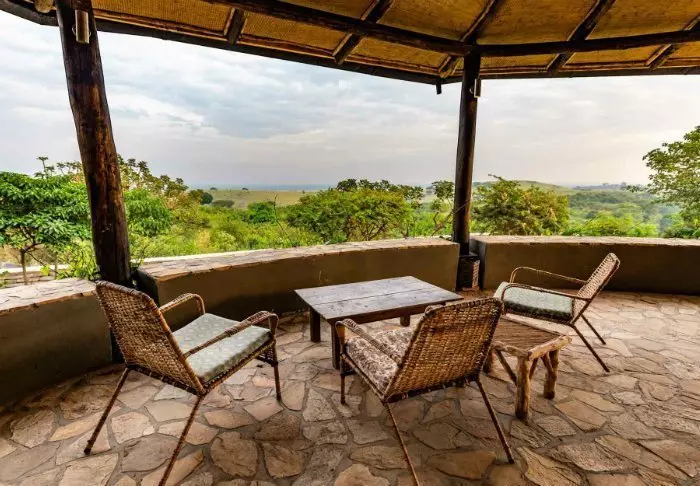 Lodgens stiliga ”bandas”-hyddor, som är byggda av trä och mursten, påminner om de traditionella hyddorna från en afrikansk by och är uppkallade efter skogens schimpanser. Samtliga hyddor har myggnät, privat badrum och balkong, där du får en fantastisk utsikt över savannen eller Kyambura Gorge.